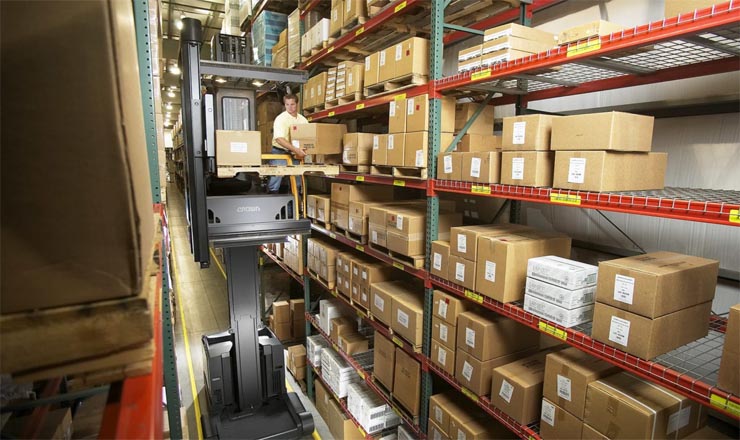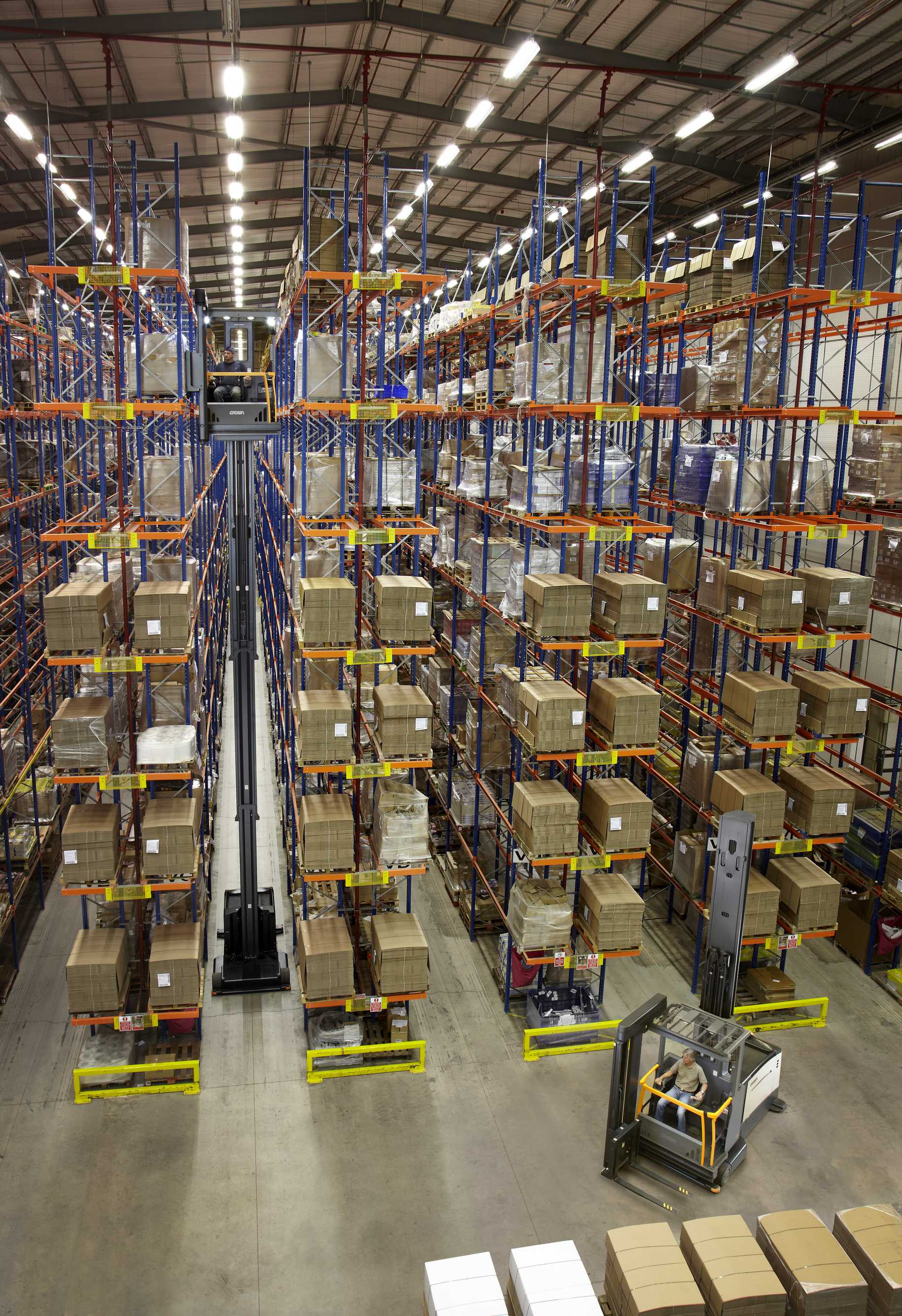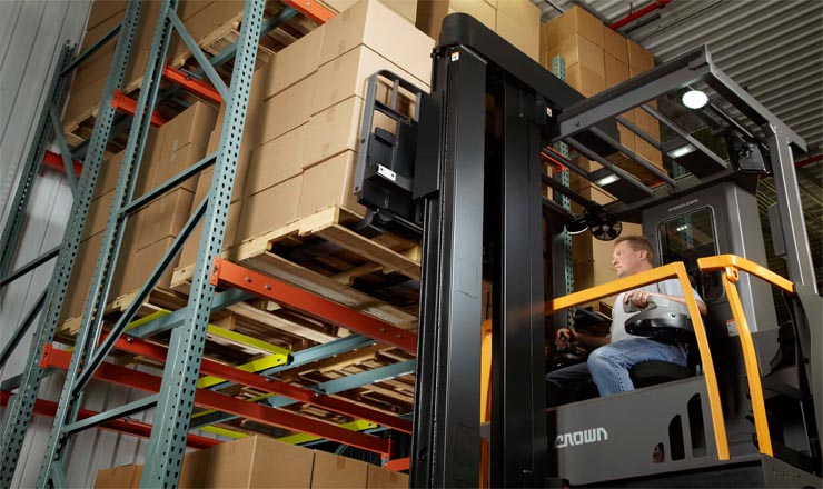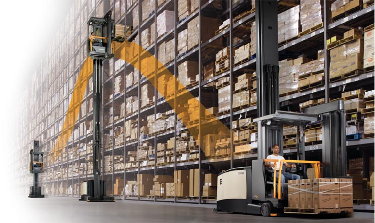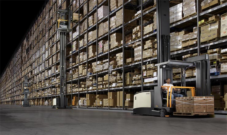 特窄通道(VNA)人上型三向叉車配合特窄巷道貨架使用,能夠最大限度提升整個倉庫的容積利用率,幫助倉庫發(fā)揮最大經(jīng)濟效益。