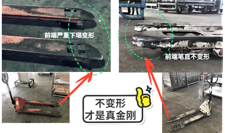 本款手動叉車充分具備經(jīng)久耐用、貨叉前段不變形、操作輕松三大特點。