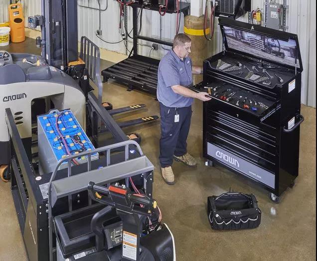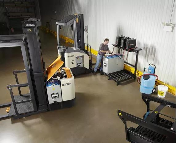 因此,電池液位需要經(jīng)常檢查,確保每個(gè)電池單體內(nèi)的液位都處于正常水平。電池中水的消耗跟使用頻率有關(guān),倉庫管理者應(yīng)該根據(jù)叉車的使用強(qiáng)度,制定電池檢查規(guī)范。