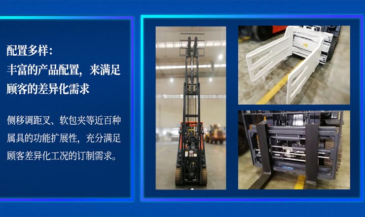 側(cè)移調(diào)距叉、軟包夾等近百種屬具的功能擴(kuò)展性,充分滿足顧客差異化工況的訂制需求。