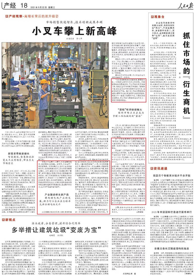 近日,《人民日?qǐng)?bào)》再次聚焦徐工,推出產(chǎn)經(jīng)觀察專欄文章《小叉車攀上新高峰》,文章指出,作為全球第一叉車生產(chǎn)銷售大國,我國叉車行業(yè)的銷售數(shù)據(jù)再攀高峰。今年1至8月,全行業(yè)銷售叉車75.57萬臺(tái),同比增長58.4%。其中,國內(nèi)市場銷售55.72萬臺(tái),同比增長近51%,出口19.85萬臺(tái),同比增長84%。