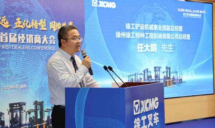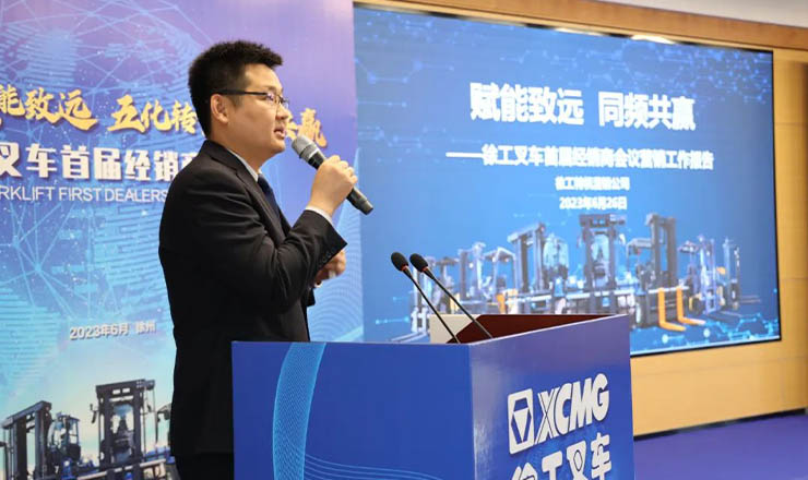 第二個環(huán)節(jié)是徐工叉車營銷工作報告。徐工特機(jī)副總經(jīng)理、營銷公司總經(jīng)理胡斯勒在會上作了營銷工作主題報告,回顧近年徐工叉車取得的市場成就,從宏觀角度深刻剖析全球及行業(yè)發(fā)展趨勢,全面闡述了徐工叉車戰(zhàn)略藍(lán)圖、經(jīng)營模式、業(yè)務(wù)模式,開拓了我們經(jīng)銷商的經(jīng)營思路和應(yīng)對措施,鼓勵叉車經(jīng)銷商們協(xié)同一致,行而不輟,未來可期。