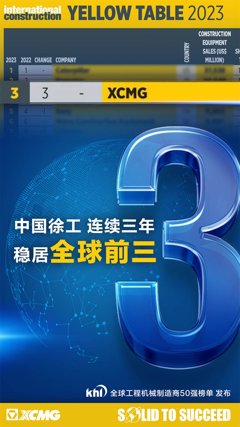 6月1日,由全球工程機械行業(yè)知名資訊集團KHL旗下《International Construction》雜志權威發(fā)布的Yellow Table榜單顯示,中國制造商徐工XCMG蟬聯第三位。徐工也成為唯一連續(xù)三年躋身全球前三甲的中國工程機械制造商!