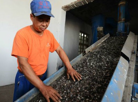資料圖片:山東省鄒平縣青陽鎮(zhèn)的廢舊電池回收利用公司依靠分布在廣東、浙江、江蘇等地的20多個回收站回收手機(jī)廢舊電池作為原料,經(jīng)過外殼剝離、粉碎、燒、浸出、萃取、濃縮結(jié)晶等工藝,提取氯化鈷、硫酸鈷、硫酸鎳、電解銅等產(chǎn)品,發(fā)展循環(huán)經(jīng)濟(jì),資源再利用的同時(shí)又保護(hù)環(huán)境。
