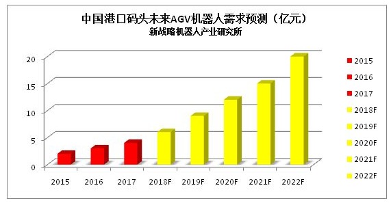 據(jù)測(cè)算,單個(gè)碼頭AGV小車的需求量約70臺(tái),中國(guó)主要的單個(gè)大型港口的總需求量保守估計(jì)在1500臺(tái),市場(chǎng)產(chǎn)值在5-10億元人民幣。截止2016年中國(guó)吞吐量過(guò)億的大型港口就有十五個(gè),如果按照每個(gè)大型港口平均500臺(tái)(保守)AGV的需求量來(lái)算,就是7500臺(tái)AGV產(chǎn)品,市場(chǎng)產(chǎn)值將是20-60億人民幣。這僅僅是吞吐過(guò)億的十五大港口,中國(guó)貨運(yùn)碼頭港口總共超過(guò)500個(gè)。該市場(chǎng)需求將在較短時(shí)間內(nèi)呈直線上升趨勢(shì),5年后逐步趨向穩(wěn)定。可以預(yù)測(cè),未來(lái)的幾年,正因?yàn)榫薮蟮慕?jīng)濟(jì)和社會(huì)效益,港口應(yīng)用將是AGV在中國(guó)富有前景的行業(yè)。